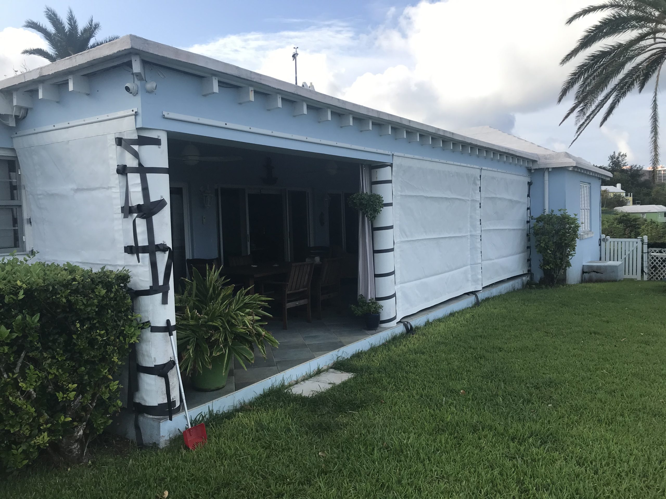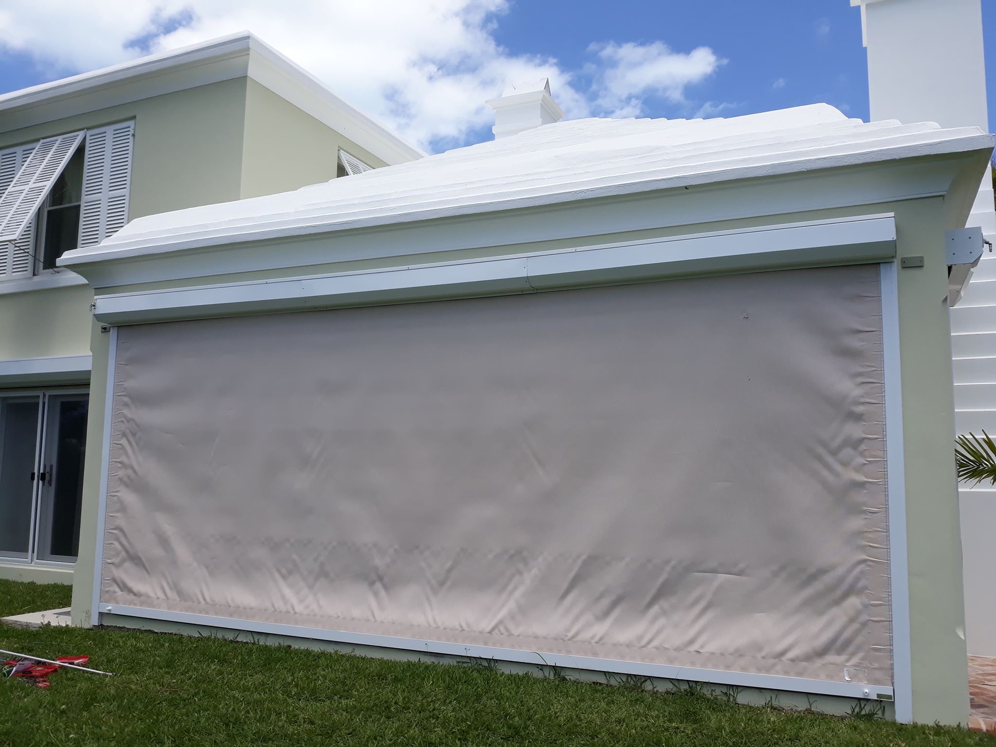 Permanently installed, these screens can be rolled down for use and offer shade and privacy.
